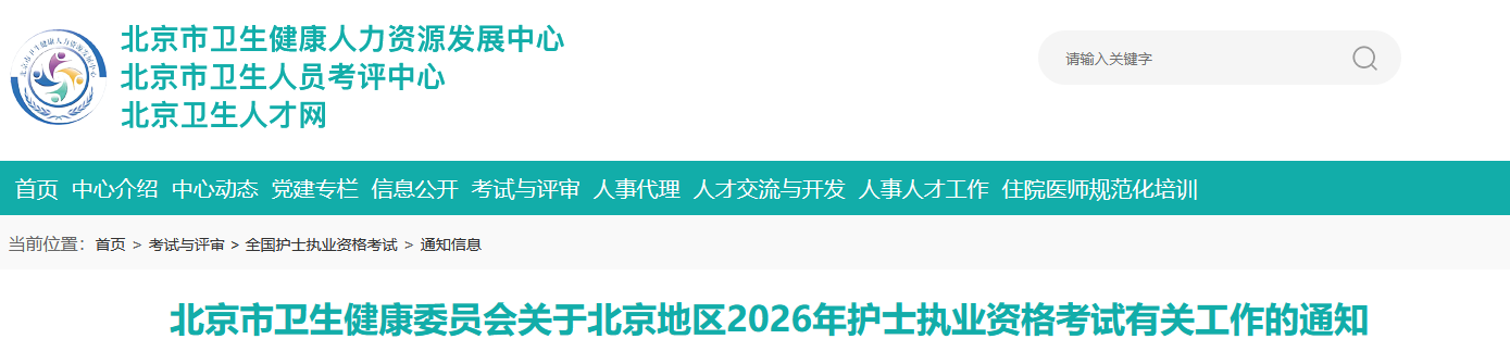 关于做好北京市卫生健康委员会2026年护士执业资格考试通知
