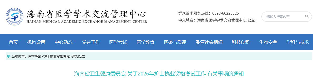 海南省卫生健康委员会关于2026年护士执业资格考试工作有关事项的通知